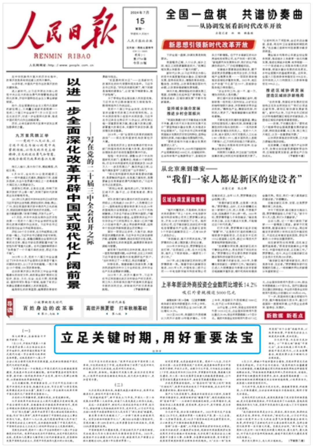 一见财经发现,在这个极为特殊的日子,当天人民日报在头版刊发任仲平署名文章《立足关键时期,用好重要法宝》,文中唯一提到一家民营企业就是赛力斯。